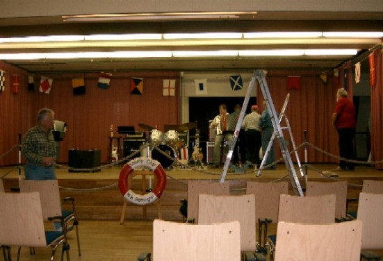 Maritimes Konzert im Bürgerhaus Bovenden, April 2004 Moderation: Kam. Heinz Neumeister Vor dem Konzert: Aufbau der Technik, Bühnendekoration und Probe |